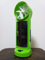 こんなに負荷が軽くてちゃんと発電するのだろうかと不安になるくらい軽快に良く回るので、試しにサーキュレターの前に置いてみると、物凄い勢いでブンブン回ってくれた。本末転倒な話しだと思いつつ、そのまま一晩回し続けてみたが、残念な事にインジケーターの示すバッテリー残量に変化は無かった。出力の仕様は35~50mAh/6000rpmで、風力発電による仕様上の満充電までの所要時間は150時間だ。見た目にもカッコ良くブンブン回っている姿は「いかにも」な感じなので、これはこれで良いとも思える……。