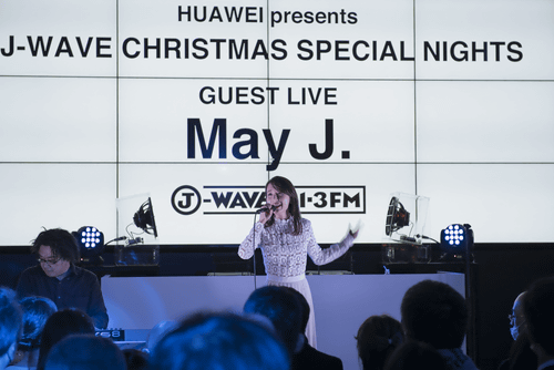 ファーウェイは、六本木ヒルズの展望台「東京シティビュー」のラウンジスペースに期間限定で開設している「ファーウェイ タッチ&トライ ラウンジ」で、J-WAVEと共同で特別ライブイベント「HUAWEI presents J-WAVE CHRISTMAS SPECIAL NIGHTS」を開催した。19日には歌手のMay J.が登場、クリスマスにちなんだ楽曲やオリジナルの楽曲を披露し、六本木ヒルズ52階からの夜景をクリスマスムードで盛り上げた。
