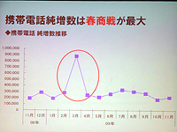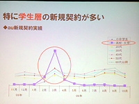 湯浅氏によれば、携帯電話の純増数はかつて、ボーナス時期など複数の商戦期に連動する形だったものの、ここ数年は春に最大の山場を迎えているという。とくに、学生層の新規契約数が顕著な伸びを見せる春ことから、auでは2010年の春商戦に向けたさまざまな取り組みを展開する方針だ。