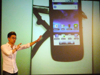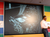 同氏は、まず、数週間後に音声検索にマンダリン語(北京語)が追加されると語り、デモを披露した。また、日本に訪れた海外からの旅行者という設定で、スクリーンに映し出された厳島神社の鳥居をスマートフォンで撮影し、画像検索してその鳥居が何であるか調べた。これは「Google Goggles」というアプリを利用したもので、Lin氏は「視覚で検索できるようになる」とアピールした。