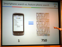 台北オフィスのプロダクトマネージャーであるYu-Kuan Lin氏は、一般的な携帯電話とスマートフォンのユーザーでは、検索数が大きく違うと話し、スマートフォンユーザーは一般携帯電話の15倍検索すると話した。スマートフォンユーザー1人と、一般携帯ユーザー750人分のGoogle検索数が等しいと述べ、「驚くべきことだ」とした。