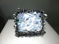 彫刻家・名和晃平は、透明な球体「Cell」を使った「BEADS」シリーズを展開している。今回、名和は、携帯電話「PRISMOID」を使って、空間に取り巻く無数の情報をCellによって視覚化することに取り組んだ。