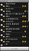 今回開始された「MySoundカラオケ」は、Android向けの専用アプリを使い、ストリーミング動画でカラオケが楽しめるアプリ。最新のJ-POPを中心とした楽曲が用意されている。専用アプリはAndroidマーケットから無料でダウンロードでき、楽曲検索、新着リスト、ランキング、再生予約機能、Twitter連携機能などを備えている。