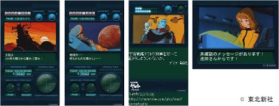 「まちアニ」は、キャラタイムのプラットフォーム上にアニメ作品を載せたもので、第一弾では「宇宙戦艦ヤマト〈劇場版〉」を40分のFlashアニメに再構成。これが28のエピソード(約90秒)に分割され、毎日1つのエピソードが表示される。ストーリーのポイントごとに名セリフをアレンジしたデコレメールが送られてくる機能や、充電中にそれまでに見たエピソードを連続再生する機能なども用意されている。