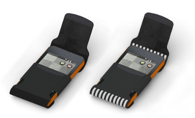 今回展示されるアイテムは、NAVAとのコラボで作られたスマートフォン向けアイテム。JAMES IRVINE氏、伊藤節氏と伊藤志信氏、KARIM RASHID氏の3組のデザインを担当。レザーとストレッチ素材によるスマートフォン用カバー(JAMES IRVINE氏)や、発泡ポリプロピレンで耐衝撃性を備えるスマートフォン用ケース(伊藤節氏と伊藤志信氏)、左右非対称の形状を採用しデジタルプリントレザーのスマートフォンケース(KARIM RASHID氏)などが出品され、いずれも商品化が検討されている。