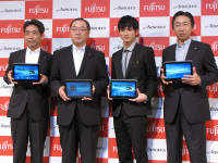 また、富士通のモバイルフォン事業本部長である高田克美氏からはARROWS Tabの機能に関するプレゼンテーションが行われた。高田氏は「タブレットの使われ方は人それぞれで、映像やゲームだけでなく、仕事であったり、趣味であったり、あるいは家族みんなでパソコン代わりに使ったりすることが考えられる。一人一人違うニーズに(単一機種で)どう応えるかを考えた」と、その商品化の背景を提示した。