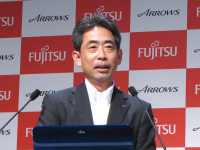 続いて、執行役員常務の大谷信雄氏からは新ブランド制定についての狙いが説明された。ARROWSは富士通製スマートフォン全体のブランドとして活用する計画で、大谷氏は「市場を見回してみると、サムスンのGALAXY、ソニー(・エリクソン)のXPERIAのように、ブランドを中心とした展開がなされている。このような状況で富士通はどうするのかとお客様からも多数お問い合わせをいただいたが、検討を重ね、“ARROWS”という名称を活用することにした」と語る。
