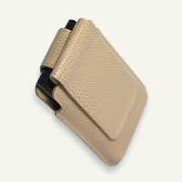 「ITO02」はレザー素材の大きなクリップを備えたスマートフォンケースで、クリップを利用してケースをバッグや手帳などにとめることができる。収納できるスマートフォンの推奨サイズは約67×132×15mmまで。デザイナーは伊藤節、伊藤志信。カラーはBlack、Red、Beigeの3色。価格は3980円。