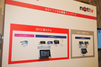 また、新モデルでは「REGZA Phone T-02D」「Optimus Vu L-06D/L-06D JOJO」「AQUOS PHONE sv SH-10D」の3機種が、MHLをサポート。MHLを利用すれば、NOTTVの映像もテレビなどの大画面で楽しめる。MHLは、microUSB端子を利用してHDMI出力を行う規格で、microUSBをHDMIに変換する別売りのアダプターが必要となる。