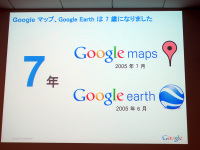 グーグルは7日、「Googleマップの進化と未来」と題して7周年を迎えたGoogleマップの発表会を開催した。