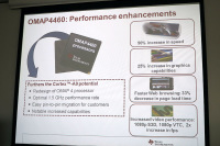 それらの“必要な要素”を満たしているのが「OMAP」――というのがTIのアピールするところ。今回の説明では、OMAPは特にハイパフォーマンス、ローパワー、フレキシビリティを満たす製品とされており、デバイスとしての価格はこれまでの製品と同等にしながら、性能向上がはかられている。