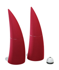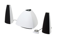 「PrismaBT」は、30Wのドーム型サブウーファーと18Wのサテライトスピーカーで構成されたBluetoothスピーカー。対応プロファイルはA2DP。大きさはサブウーファーが248×294×199mmで、スピーカーが96×118×234mm、重さは4.1kg。ボディカラーはブラックとホワイト。