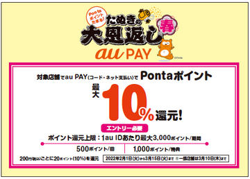 au PAY、ネット決済やコード支払いでポイント還元キャンペーン