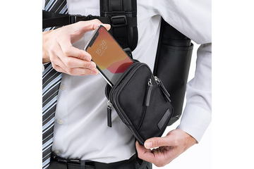 サンワサプライ、リュックやショルダーベルトに取付可能なスライド式スマホポーチ