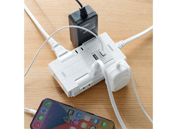 サンワサプライ、差込口を90度回せるUSBポート付き電源タップ