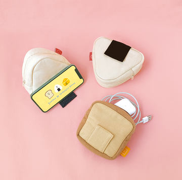 スマホを立てられるおにぎりと食パン型のポーチ、ヴィレヴァンから