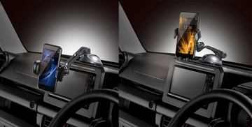 狭いダッシュボードでもスマホを見やすく設置、カーメイトから車載用スマートフォンホルダー2種