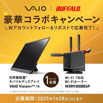 • Xフォロー&リポストでWi-Fi 7対応ルーターとモバイルディスプレイが当たる、バッファローのキャンペーン