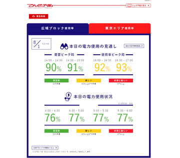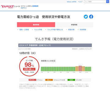 ヤフー、電力需給のひっ迫状況がリアルタイムで確認できる「でんき予報」