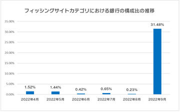 9月は銀行の偽サイトが180倍増、BBソフトのフィッシング調査