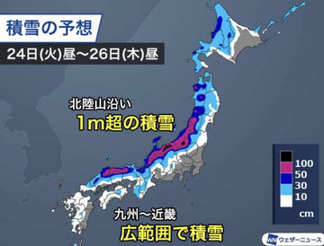 市区町村単位で大雪情報がわかる「大雪ピンポイント」配信、ウェザーニュースアプリで