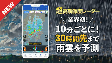 天気アプリ「ウェザーニュース」、雨雲レーダーの予測時間が30時間に