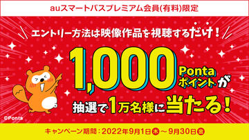 auスマートパスプレミアム、TELASA視聴で1000Pontaポイントが当たる
