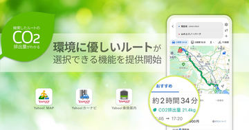 「Yahoo! MAP」などでルート選択時にCO2排出量を確認できる機能