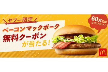 ベーコンマックポークの無料クーポン、Yahoo!のスマホアプリ限定で60万人に