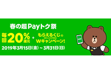 「LINE Pay」で20%還元、LINE PayカードやQUICPay+の利用も対象