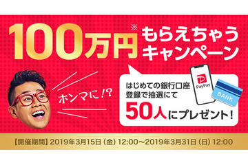 PayPay、口座登録で「100万円もらえちゃうキャンペーン」