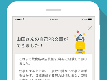 4つの質問に答えるだけで自己PR文を自動生成、リブセンスが転職アプリのiPhone版