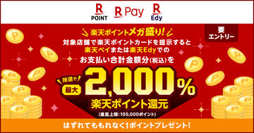 「楽天ペイ」「楽天Edy」で最大2000%還元の抽選、4月30日まで