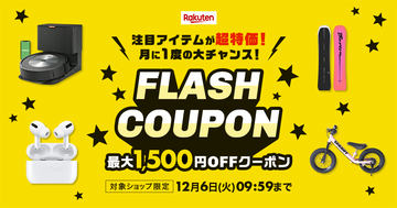 楽天市場、対象商品が拡大した最大1500円のクーポン配布 「フラッシュクーポン」12月~