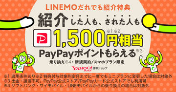 Yahoo!携帯ショップ、LINEMOを紹介すると双方に1500円相当プレゼント