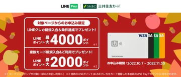 LINEクレカ、新規入会と家族カード申込で最大6000ポイント還元