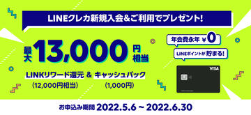 LINEクレカ、新規会員に最大で1万3000円相当をプレゼントするキャンペーン