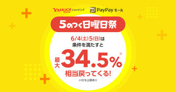 ヤフー「5のつく日曜日祭」は6月4日から、最大34.5%のPayPay還元