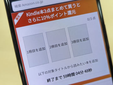 Kindle本を3点まとめて買うと10%還元、12月2日まで