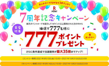 楽天ポイントカードが7周年、777名に777ポイントプレゼント