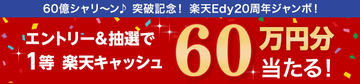 1等は60万円分の楽天キャッシュ、楽天Edyが20周年記念キャンペーン