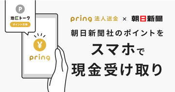 pring法人送金、朝日新聞社サービスのポイントをスマホで現金受け取りできるように