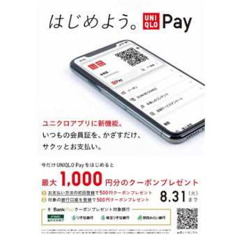 UNIQLO Payに新規登録で最大1000円分のクーポンプレゼント、8月2日から
