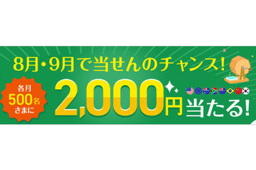auじぶん銀行、2カ月連続で500名に現金2000円が当たるキャンペーン