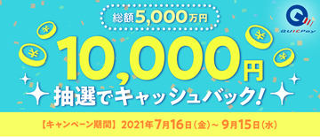 QUICPayを利用したキャンペーン 5000名に1万円キャッシュバック