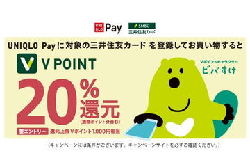 UNIQLO Payに三井住友カードの登録と利用で20%還元、10日から