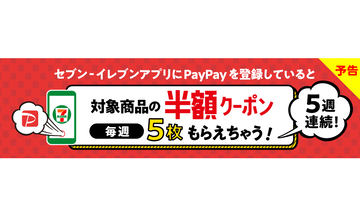 「セブン-イレブンアプリ」にPayPay登録、毎週半額クーポンもらえるキャンペーン