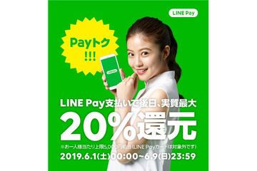 最大20%還元のLINE Pay「Payトク」キャンペーン、6月1日から