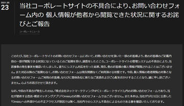 「Omiai」運営企業のWebサイトで不具合、他者の個人情報が一時閲覧可能に