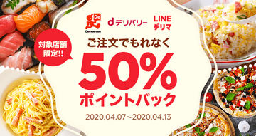 大阪限定、dデリバリー・出前館・LINEデリマなら50%ポイント還元